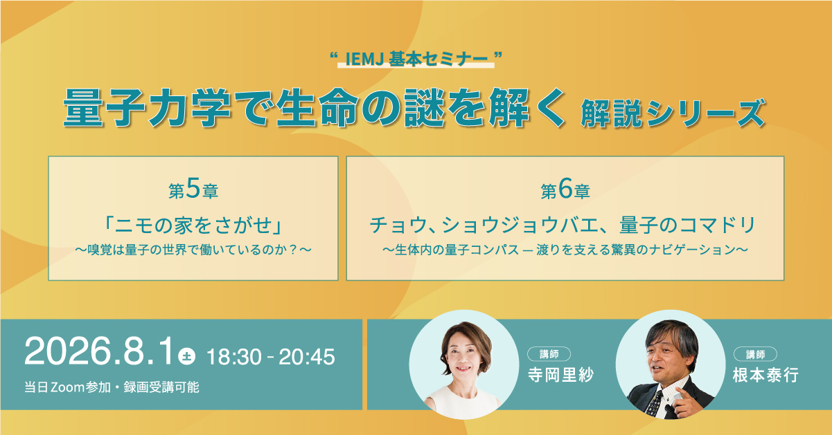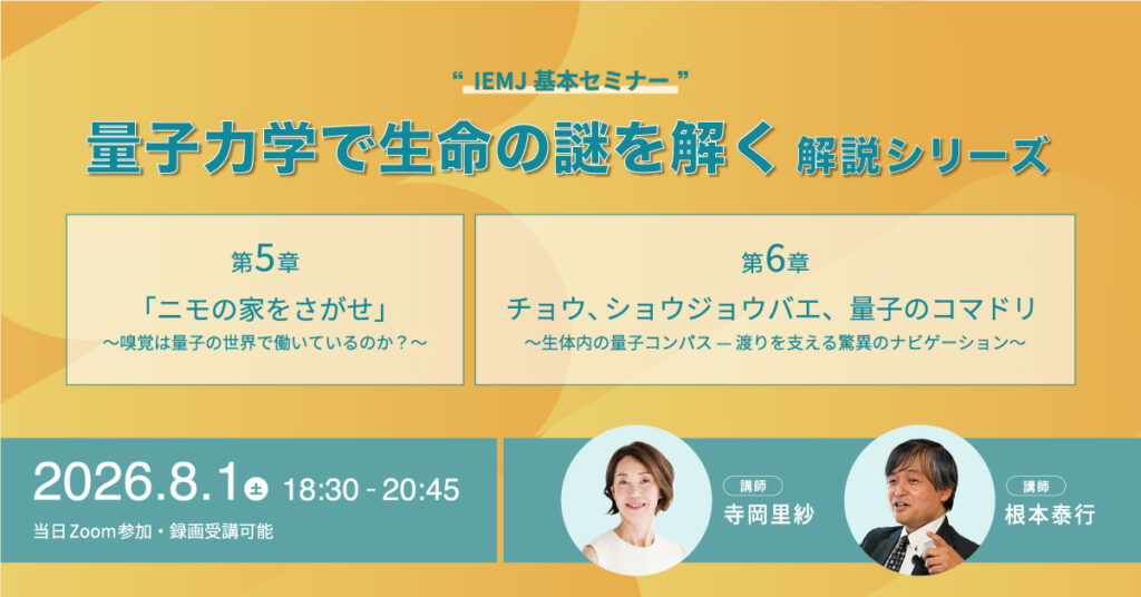 本セミナーでは、量子生物学が明らかにしつつある嗅覚の新しいメカニズムを、従来理論との比較、主要論文のエビデンス、そして海洋生物の帰巣行動の実例を交えながらわかりやすく解説します。