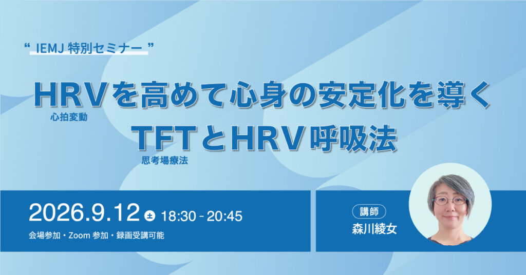 本セミナーでは、TFTによる「エネルギーの滞りの解消」とHRV呼吸法による「調律」という2つのセルフケア法を、エビデンス(科学的根拠)を交えてご紹介します。
